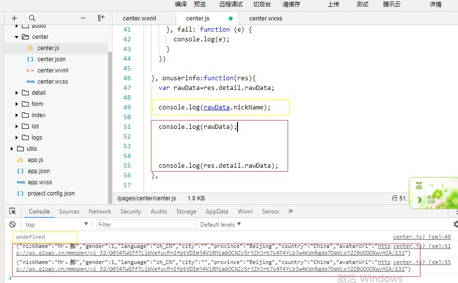 点击用户授权已经获取到了用户的信息并且打印出来了