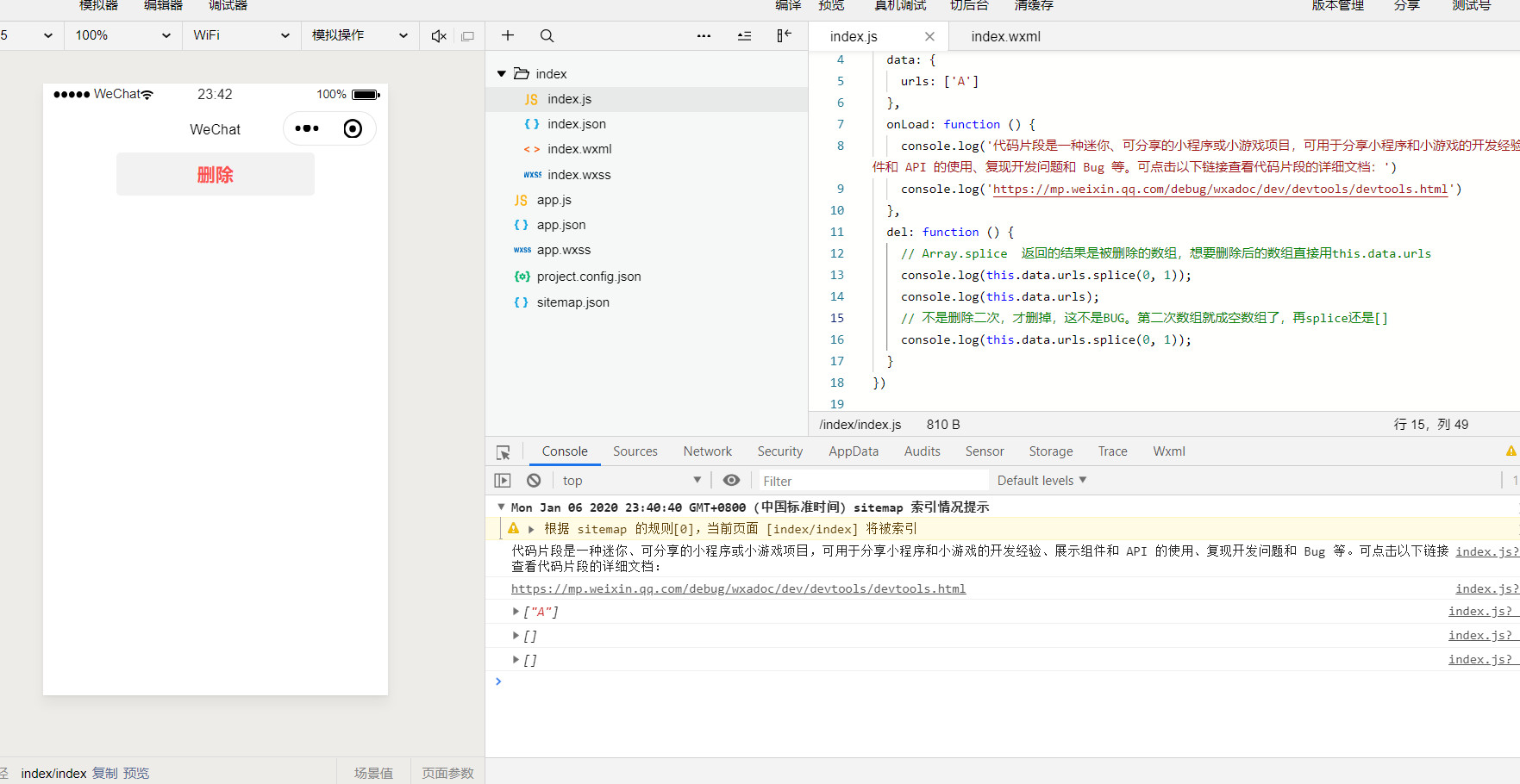 删除下标为0的需要删除两次才能删除