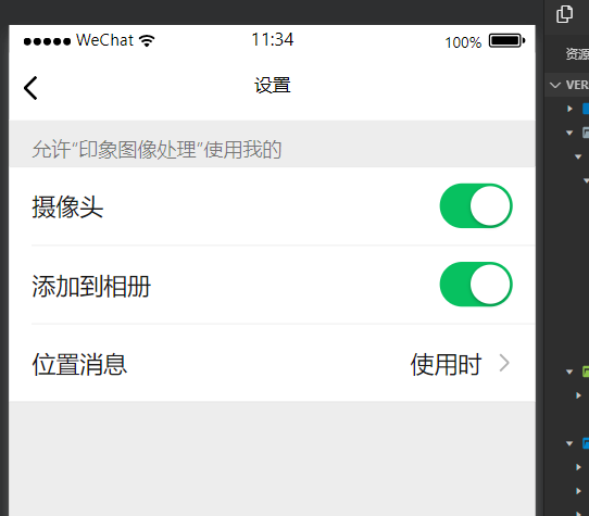 现在在小程序插件里 跳转过设置页面 明明允许(打开摄像头,添加到相册,位置)权限,却在插件里一直获取到是没有允许 (打开摄像头,添加到相册,位置),以下代码是在插件获取是否打开(摄像头,添加到相册,位置)