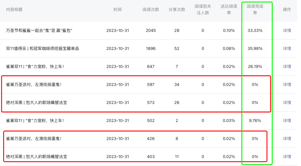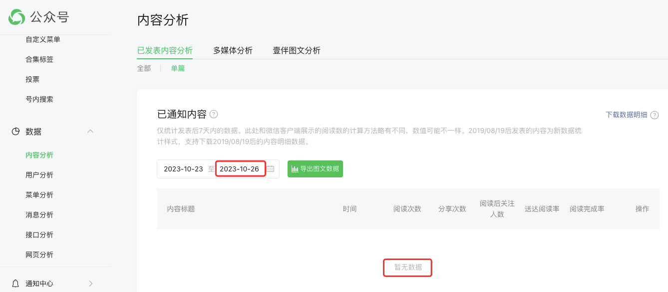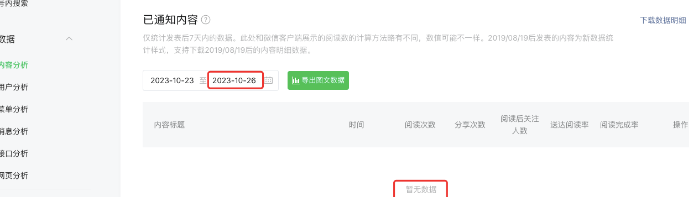 1)推送时间:2023年10月26日19:50左右(分组推送),确认推送成功,且点进文章是已经有数据累积了的