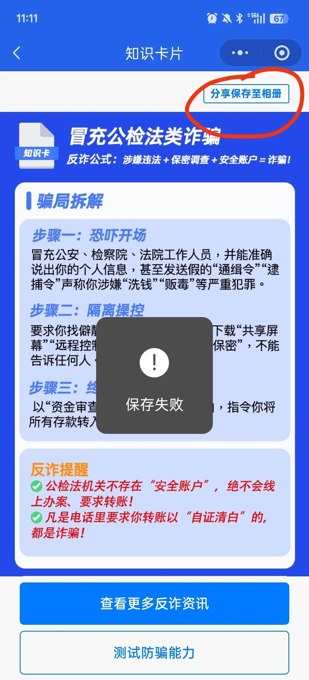 新版本上线:在体验版中,这个“分享保存”功能没问题; 但是上线正式版后功能报错了。