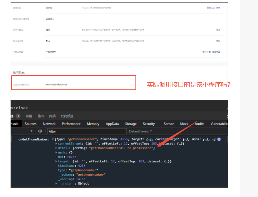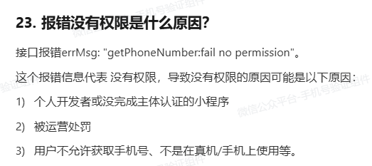 你好,请仔细参考常见问题核查原因 https://doc.weixin.qq.com/doc/w3_AdIAPwbfAHswHrG51P5RYam7JD8Pp?scode=AJEAIQdfAAoaGht14fAdIAPwbfAHs,并检查实际调用手机号组件接口的小程序是否为已认证非个人主体小程序