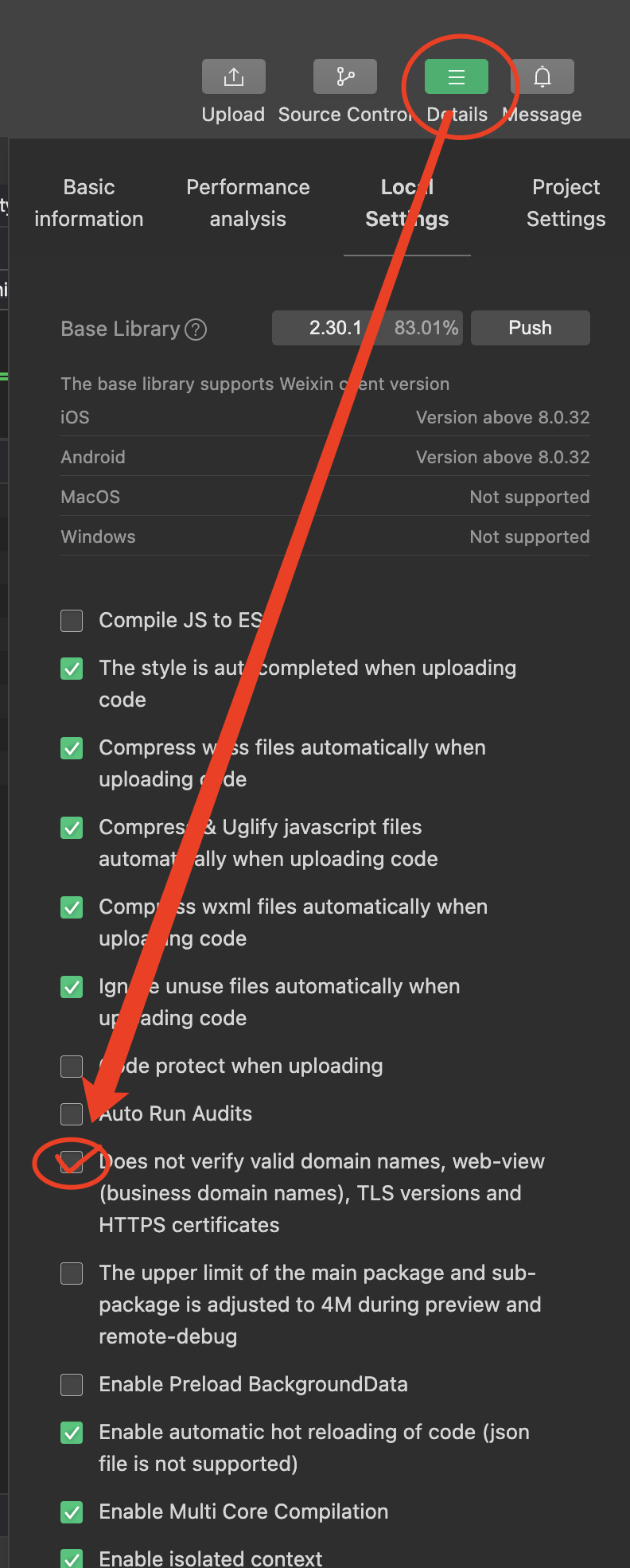 楼上说的那个不校验安全域名,在开发工具的详情里面