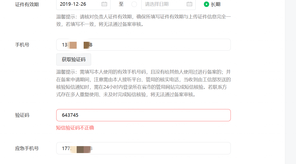 小程序备案中的管理员身份证等与微信小程序中信息不一致,变更过程中,验证码无法验证?