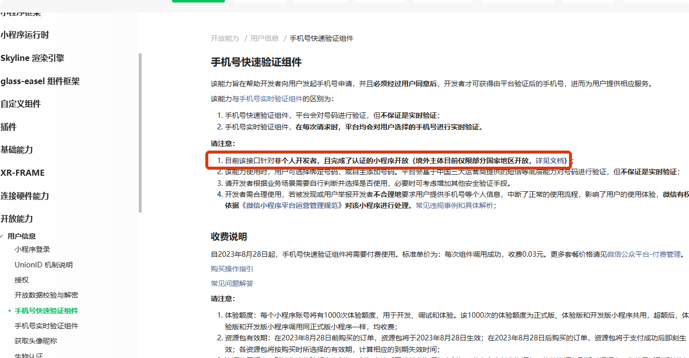 我这个是非个人,并且已经完成了认证等各类申请,但是就是没看到手机号权限这个接口