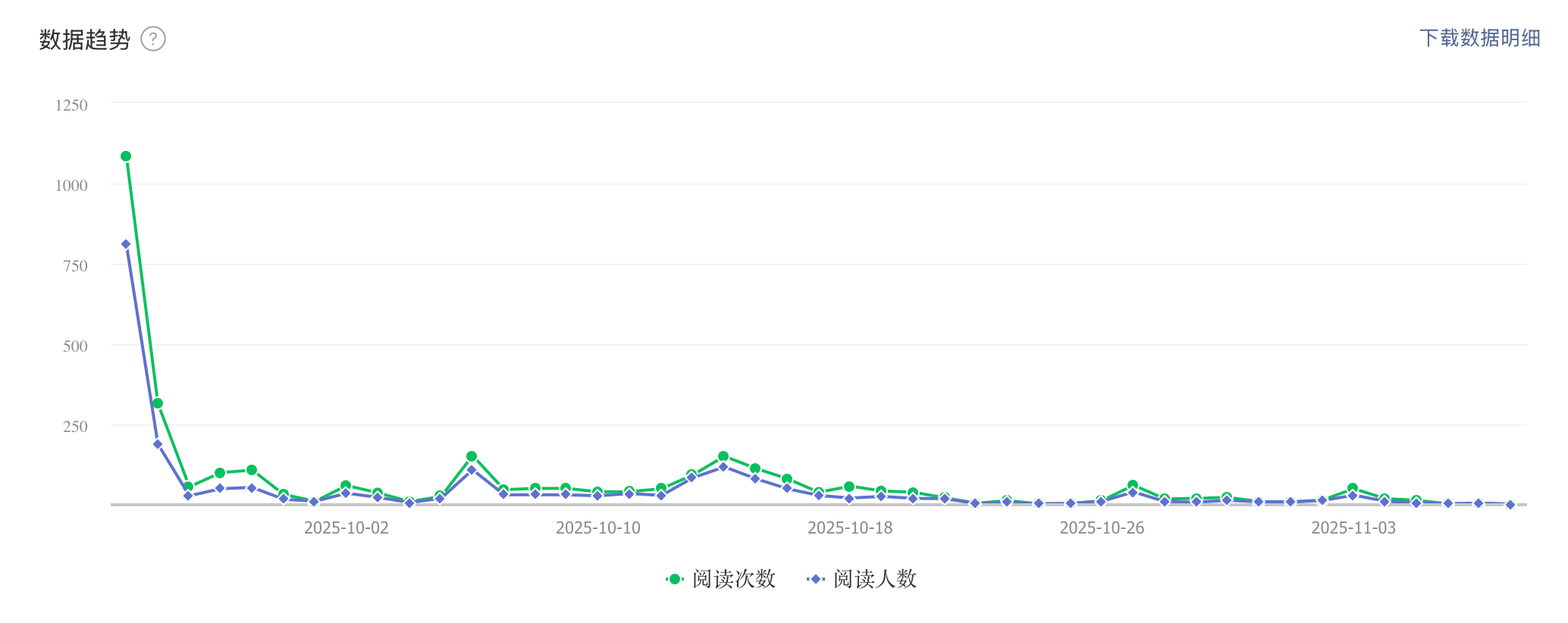 - 阅读量同步下跌:此前单日 800–1200+,现在仅 50–100。