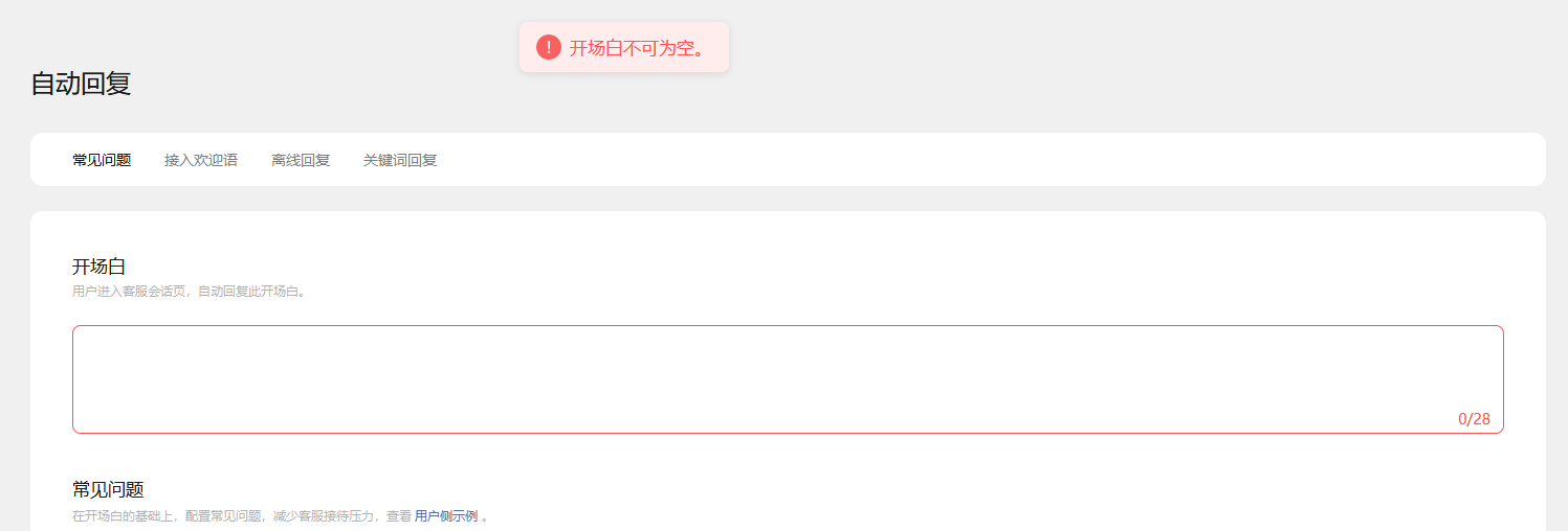 微信小程序客服的开场白,可以取消嘛?或者为空~
