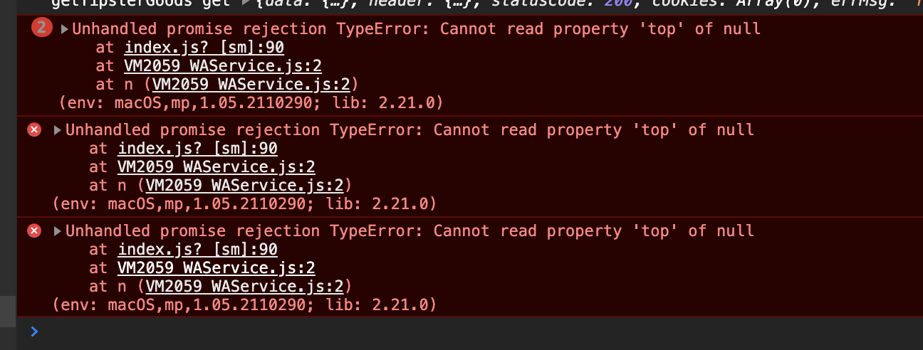 Unhandled promise rejection TypeError: Cannot read property 'top' of null