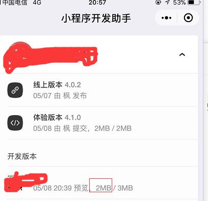 我也遇到这个问题,明明大小没有2m,可以上传体验版,但是统一显示成了2m,楼主这个问题现在解决没有?