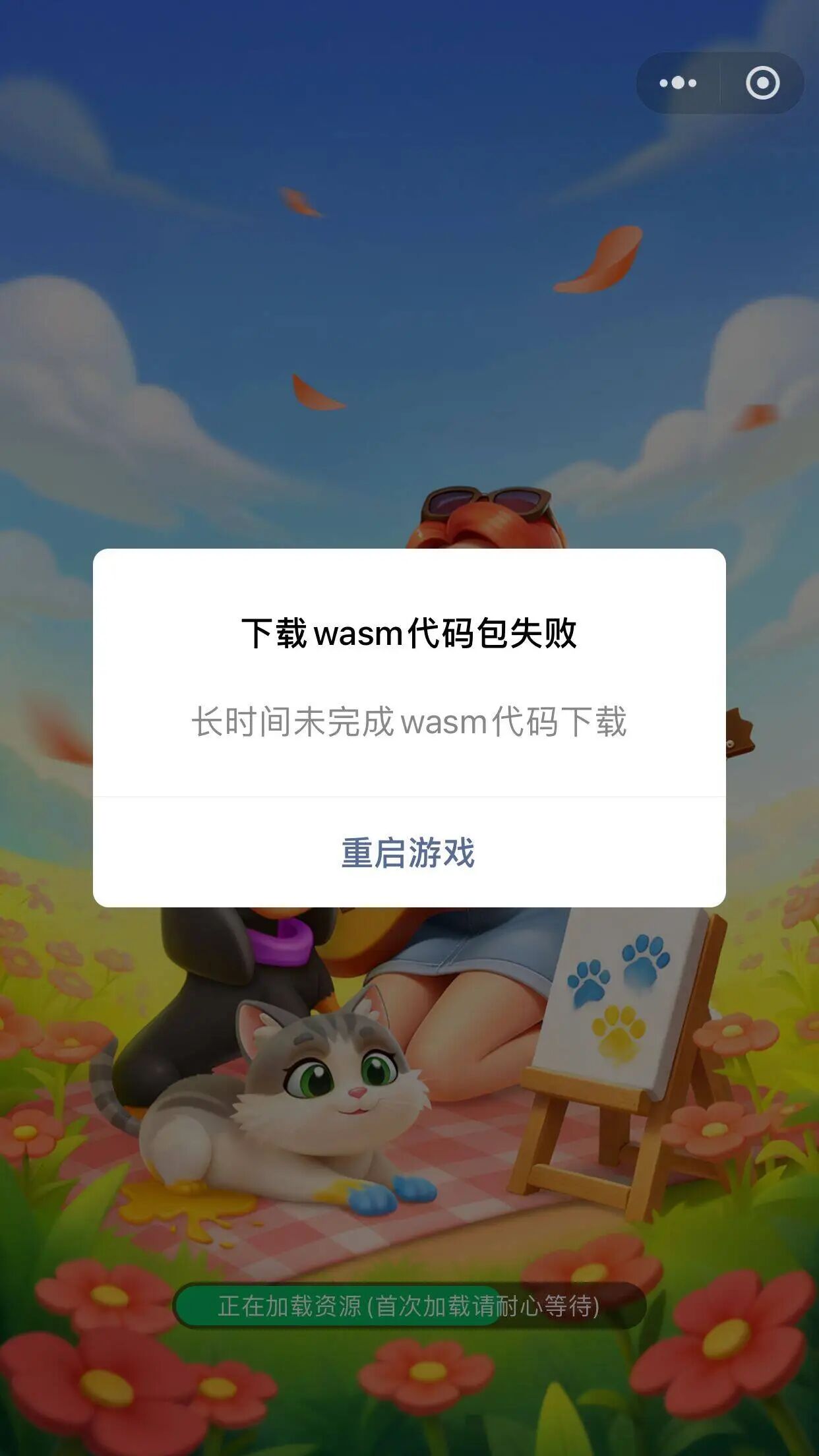 玩家进入小游戏时,会卡在加载界面,最终弹出「下载 wasm代码包失败 / 长时间未完成 wasm代码下载」,点击「重启游戏」后问题依旧,切换网络重启游戏问题看依旧,只有删除本小游戏再重新搜索打开,才能正常进入。