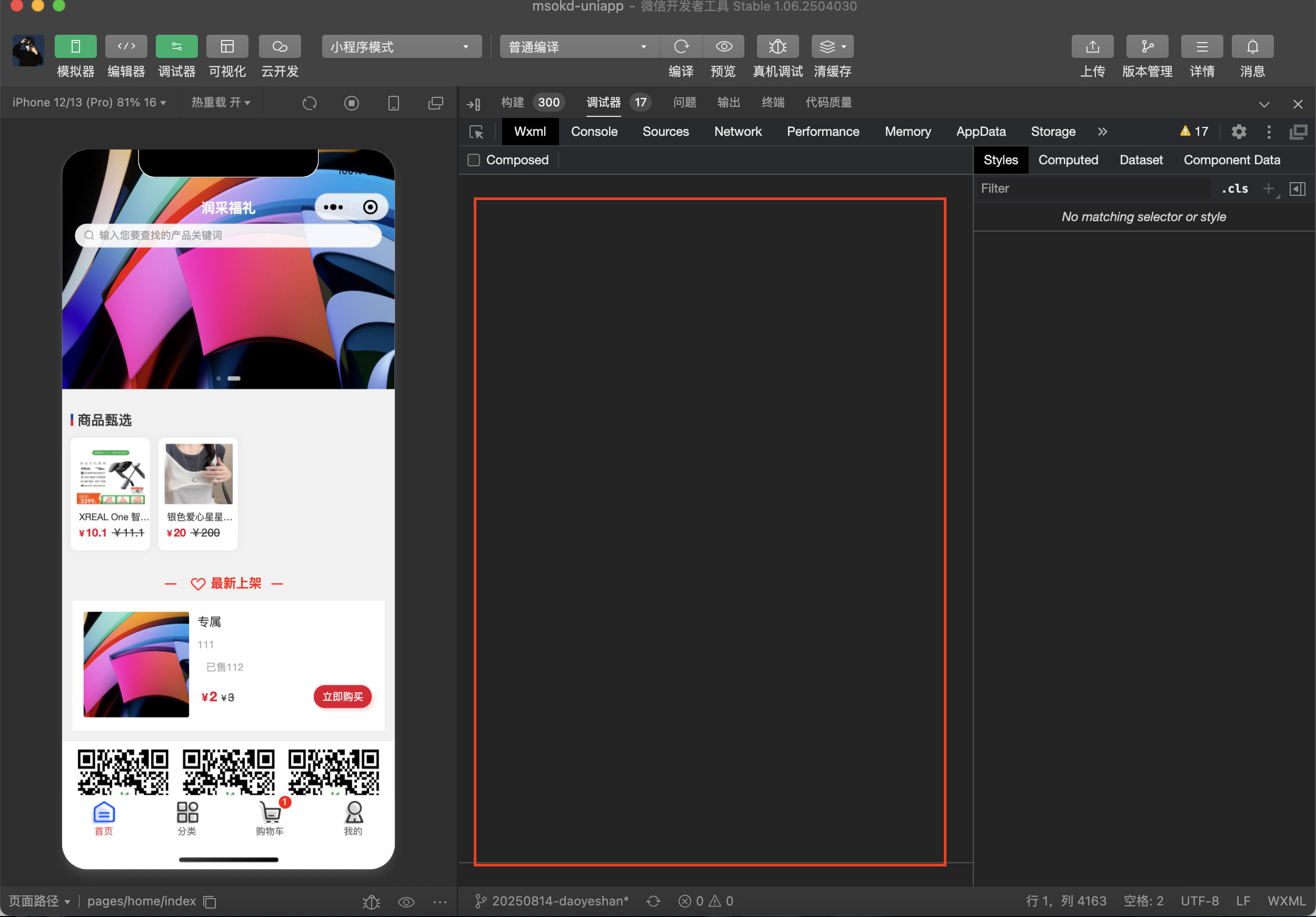 开发工具控制台中Wxml不显示代码, 之前只有偶尔遇到, 但重新编译之后就好了, 从今天开始, 一直这样, 卸载重装官方最新稳定版也不行, 气人啊