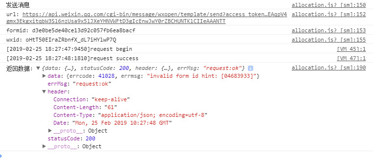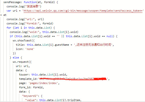 由于是测试没有写formid 7天有效期保存,实际开发是点击一次获取一次formid,可提示我id错误或者过期,实在想不出来问题在哪,希望有大神可以给我指点下,下面贴出代码