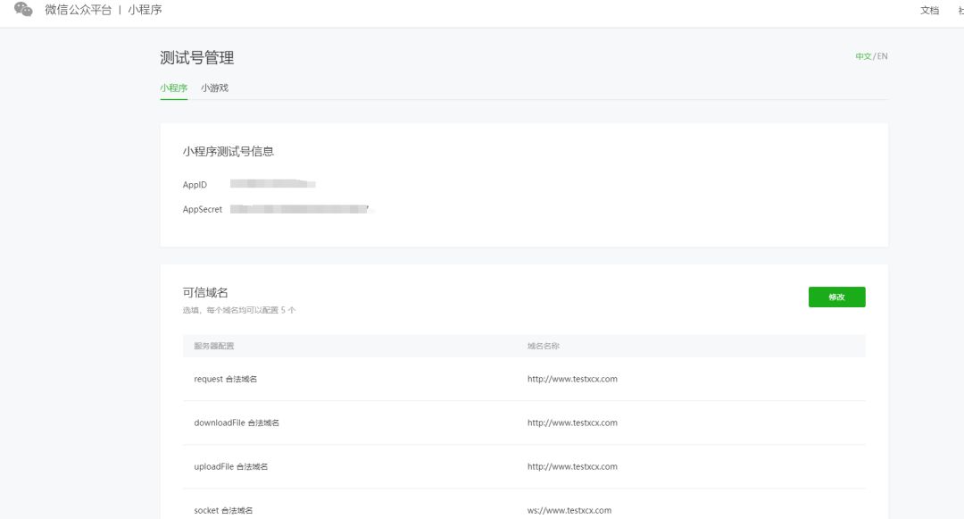 我们说的是测试号 不是正经的小程序号