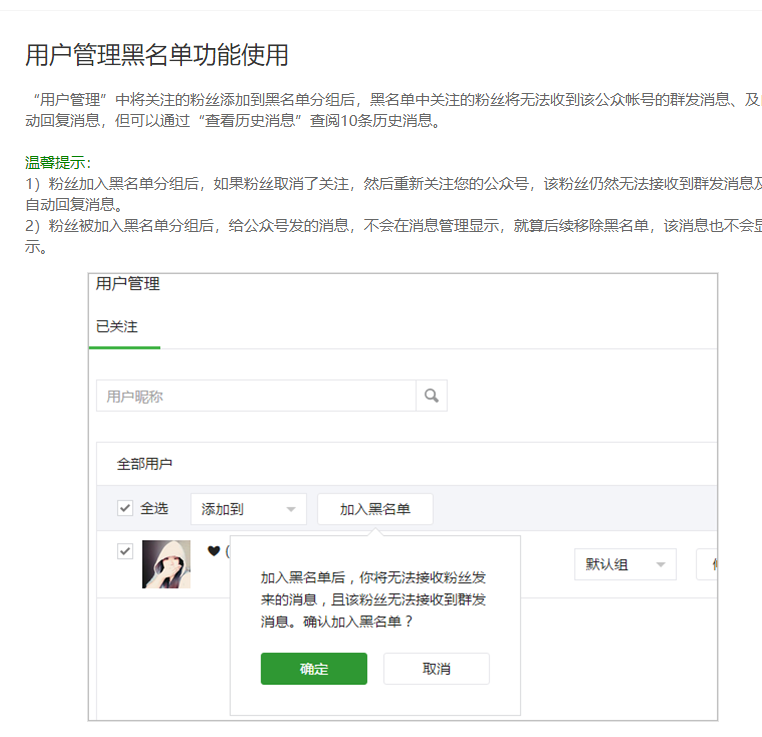 将关注公众号的用户拉黑后,为什么用户还能看到公众号文章?还能发消息?