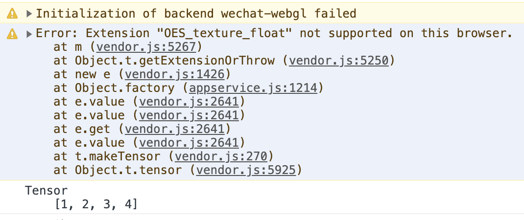 接入TensorFlow.js插件后,手上的红米手机,华为手机,都出现了此情况,webgl初始化失败,转而走cpu backend了,然后检测推理就会卡死小程序