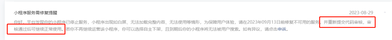 您好,我们收到这个提醒通知,我们已经更改代码,且审核通过,并上线,是不是就不用再做任何操作了,然后到了9.13号,之后也不会出现小程序无法被用户搜索的情况吧???
