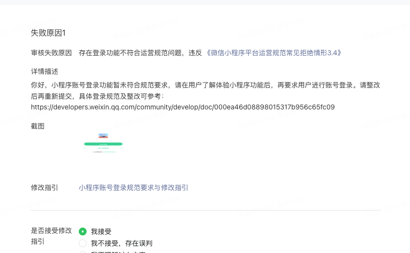 2.小程序最新版本符合登录规范的。请补充类目后再重新提交代码审核,后续审核将以实际提交的小程序服务内容为准。