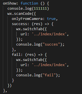没有,这个页面就只在onshow中写了一个wx.scanCode,没有其它代码。onshow中写的代码片段如下: