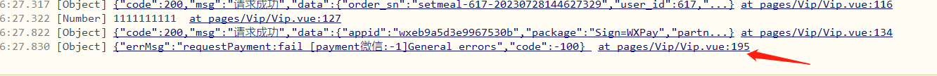 "errMsg": "requestPayment:fail [payment微信:-1]General errors",