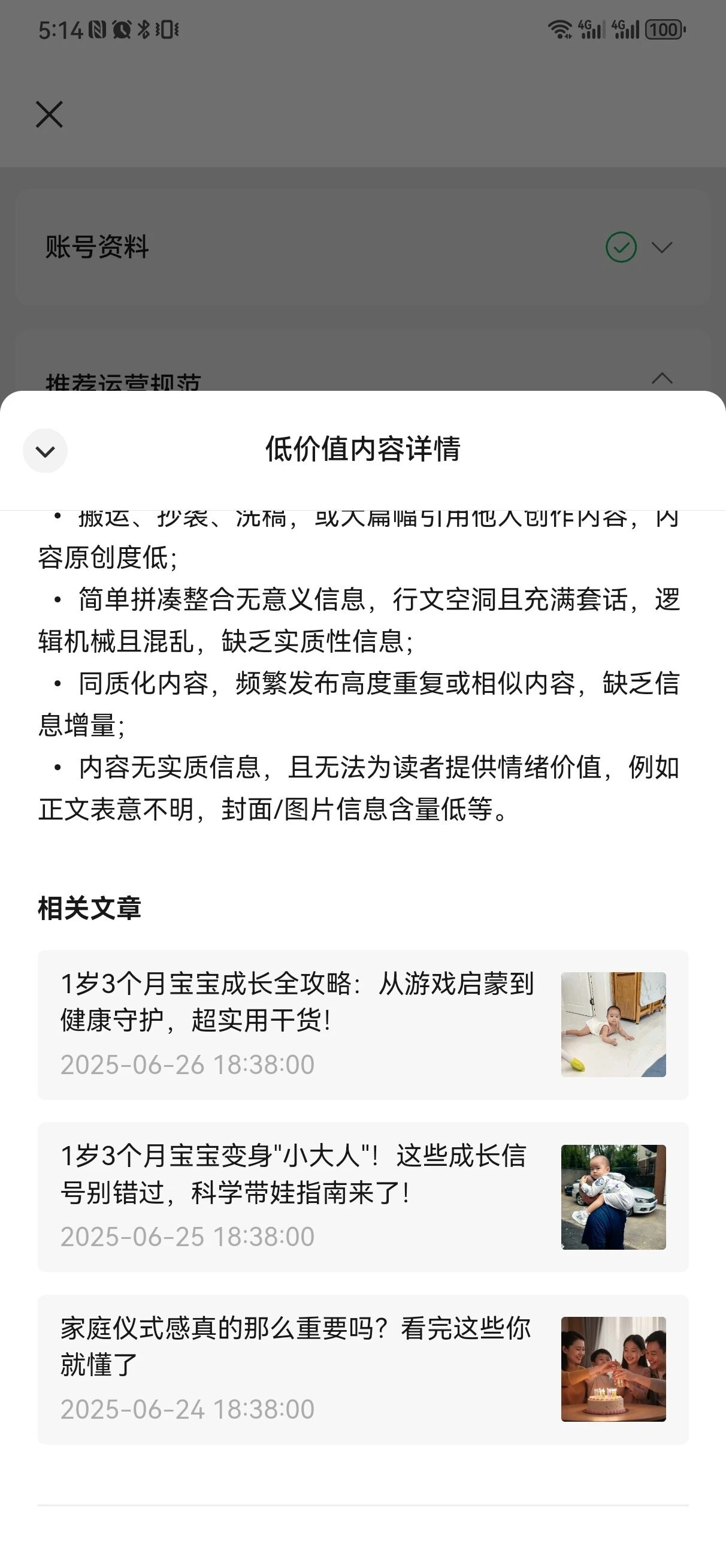 尊敬的公众号平台工作人员您好!我是公众号【萌主育儿岛】的运营者,近期因自身内容审核疏忽,发布了几篇未达到平台优质标准的文章,导致账号被限流限制推荐,对此我深感自责与抱歉! 发现问题后,我第一时间下架了相关低质量内容,对选题策划、内容创作及审核流程进行全面整改优化。从选题立意,内容价值到排版规范性多方面都进行了严格把控;同时我也认真学习了平台规则与优质内容案例,不断提升整体创作能力。后续将专注深耕【家庭育儿领域】,为咱们平台输出更多有深度、有价值的原创内容,杜绝类似问题再次发生。 恳请平台给予重新评估的机会,迫切希望能恢复正常推荐,我知道错了,也会以实际行动证明改进决心,为用户带来更优质的阅读体验!期待您的回复与指导,感谢!
