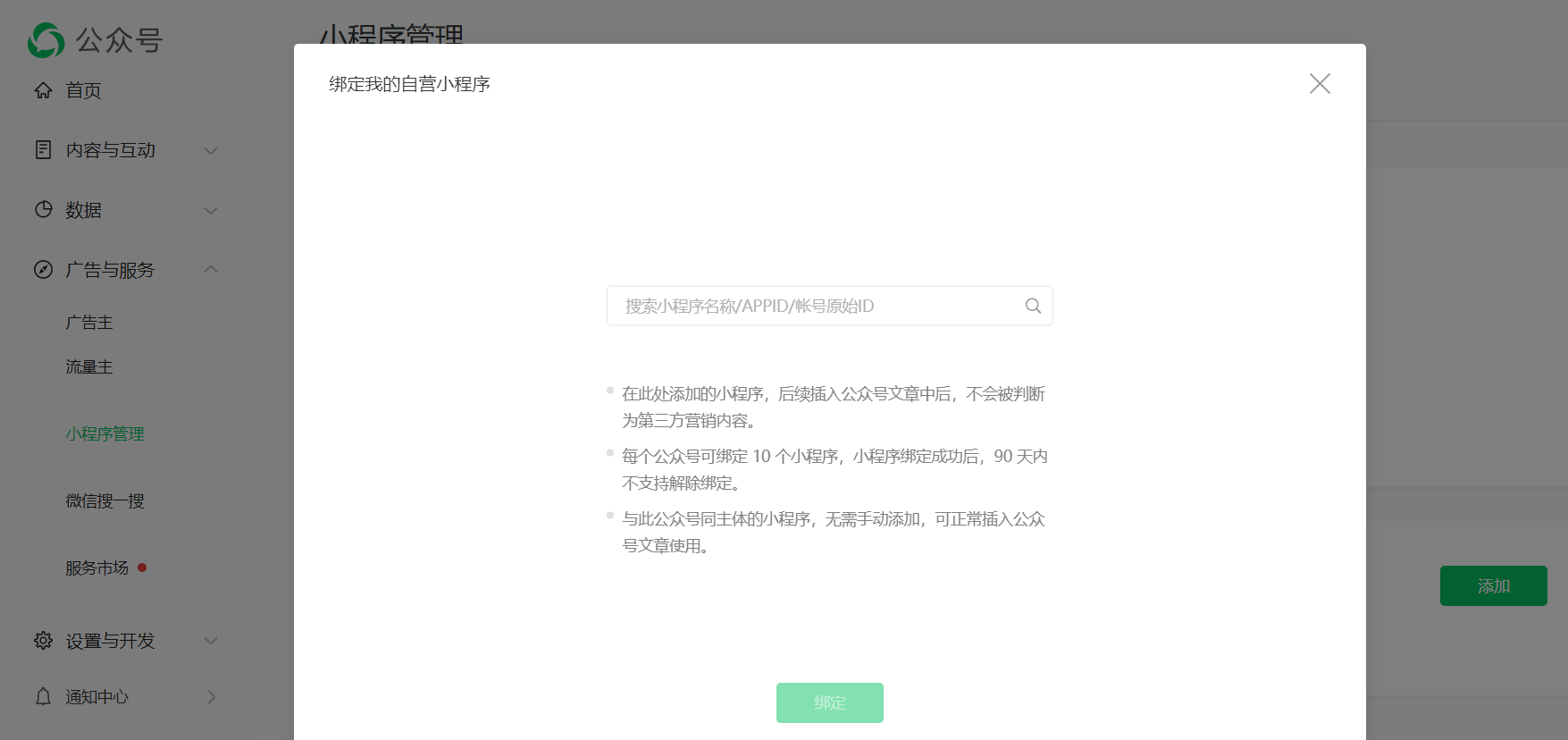 微信公众号-小程序管理-添加按钮中怎么没有申请小程序按钮了?