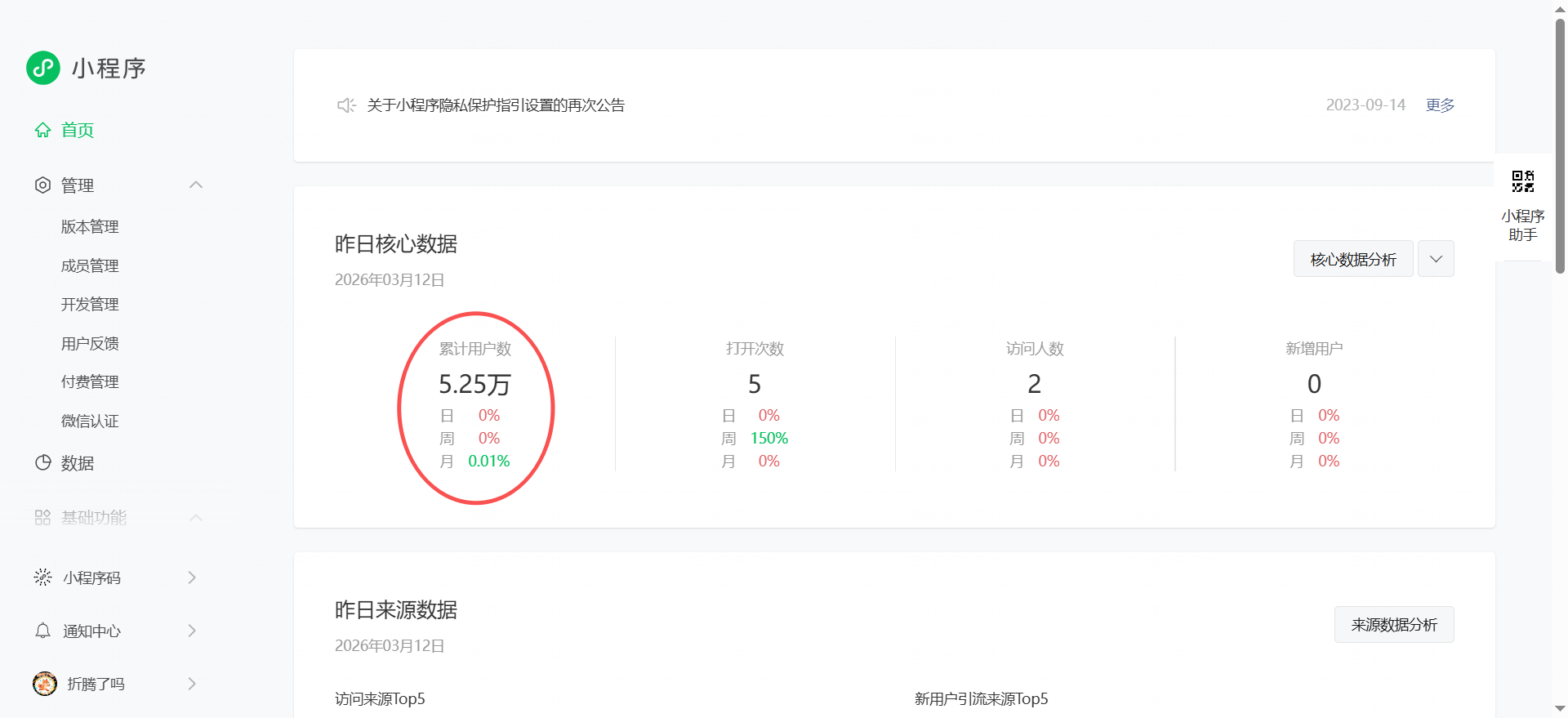 登录小程序后台即可看到