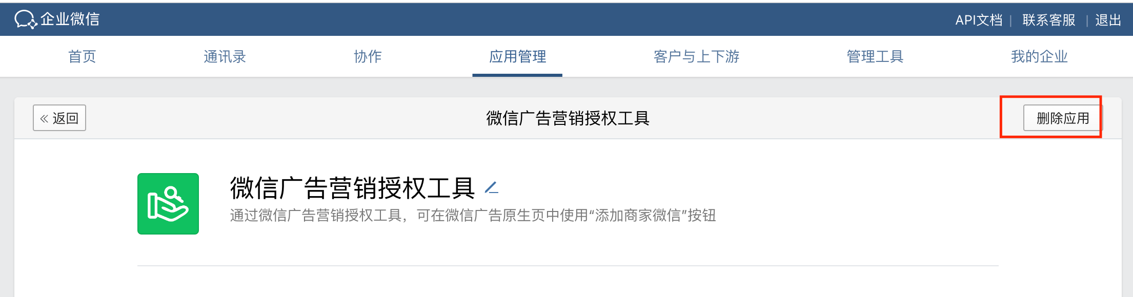在企微后台应用管理中点进【微信广告营销授权工具】点击右上角删除,然后重新授权就行了