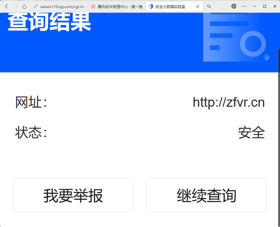 也使用了「腾讯安全-网址安全中心[6]」对网站域名进行检测,显示的是域名安全并没被拦截,但是就是显示需要访问,这个大大影响了我