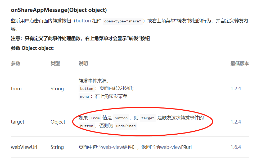 onShareAppMessage右上角转发没有输出target,但是button触发的就输出target了
