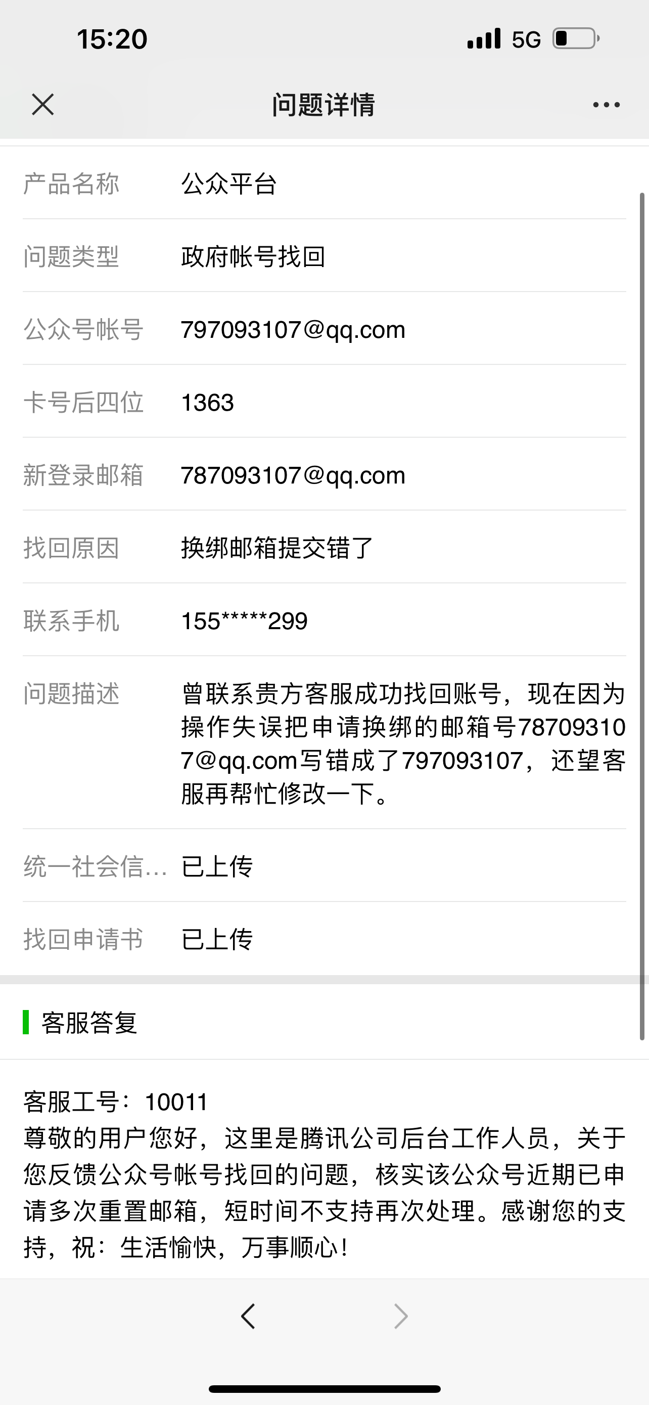 填写找回邮箱时手动输入账号错误了一个数字,现在后台客服工号10011处理回复无法多次找回,这是不是类似当年“我不能证明我是我自己“的情况?请处理一下