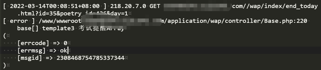 [ error ] /www/wwwroot//application/wap/controller/Base.php:220 base[] template3 考试提醒Array