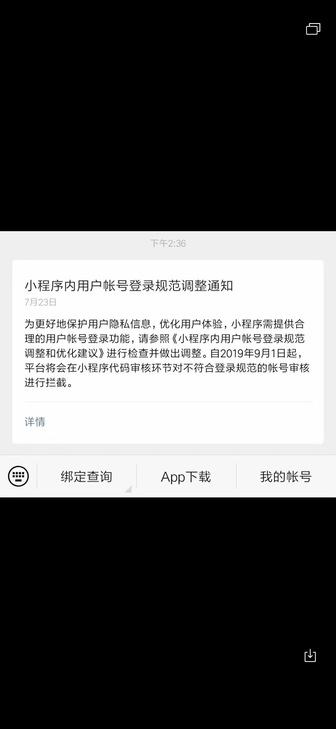 昨天收到一条这样的整改通知,想请问一下,我们的小程序是做的公司内部使用的半OA系统,首页为登录页,不登录无法使用,请问需要整改么?