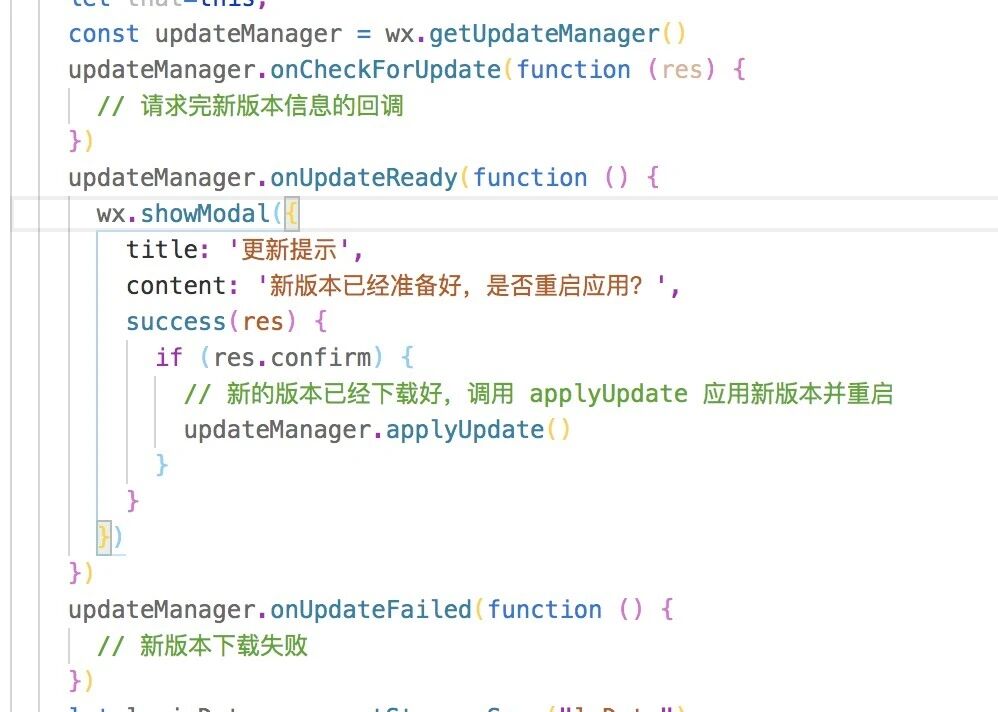 let startParamObj = wx.getLaunchOptionsSync(); // 检查是否存在新版本. // 获取小程序更新机制兼容 // // 单页面模式情况下,不检查更新. if (wx.canIUse('getUpdateManager') && startParamObj.scene!=1154) { const updateManager = wx.getUpdateManager() if(updateManager.onCheckForUpdate){ // .... 省略 } }