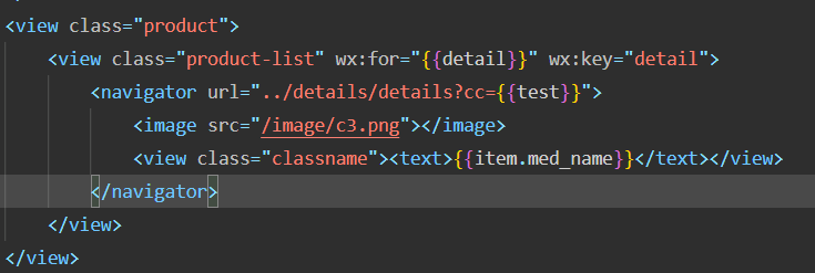 <navigator url="{{'../details/details?cc='+test}}"> 跳转到新页面 </navigator>