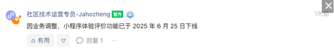小程序体验评价功能已经下线.