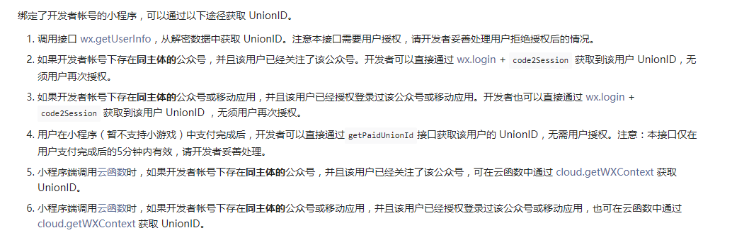https://developers.weixin.qq.com/miniprogram/dev/framework/open-ability/union-id.html#UnionID%E8%8E%B7%E5%8F%96%E9%80%94%E5%BE%84