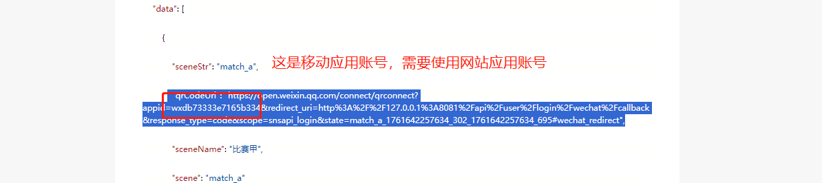 // 构建微信授权URL(这里使用网站应用扫码登录方式)