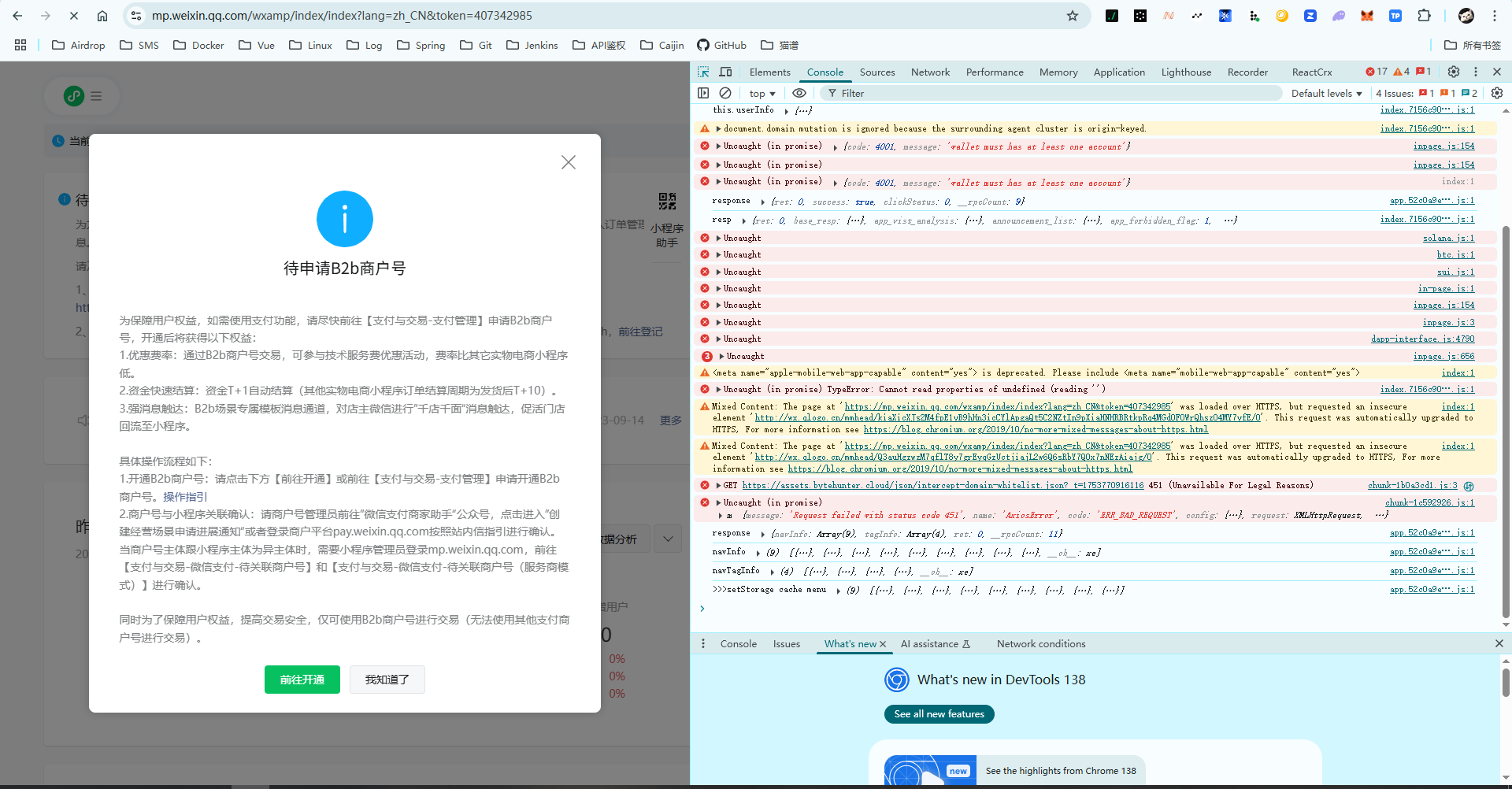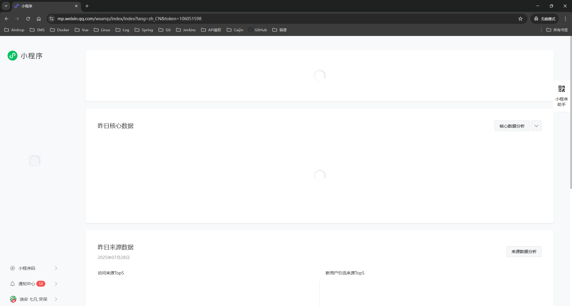 进入小程序后台直接卡死,操作不了,换浏览器或者换电脑登陆都不行