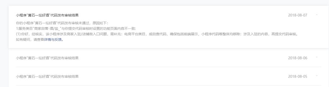 你好,经核实,小程序08-07,10:03:19提审版本存在“申请入驻”页面,请自查、处理相关违规内容,确保包括前端展示、小程序代码等整体均没有违规内容。请将相关前端展示、相关代码等均完整去除后,再提交代码审核。