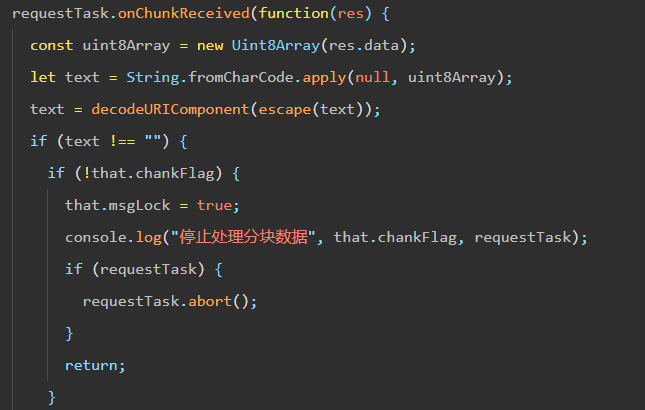 微信小程序流式输出 终止输出 使用requestTask.abort()无效