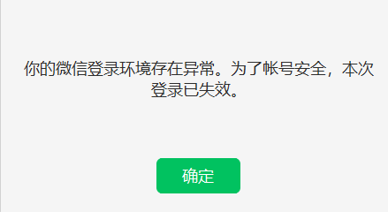 你好,提示“登录环境异常,本次登录失效,请重新登录”的问题,重新扫码登录即可,出现该提示一般是由于微信帐号被其它用户投诉导致(如:涉嫌频繁发送营销类广告骚扰信息等,请遵守微信使用规则,并规范个人行为,谢谢!)
