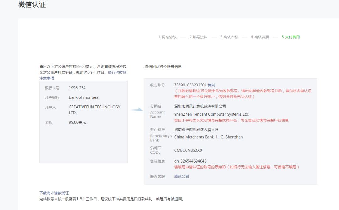 还有一个海外的服务号也没有认证成功,没有告知具体的原因,钱也没有退回到原有账户。请麻烦帮我查下,谢谢!