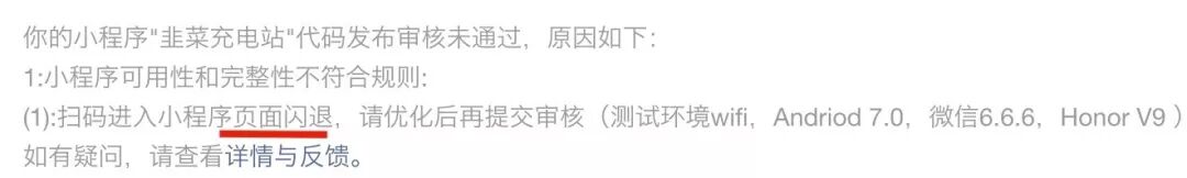 这次审核结果又是闪退!我用6.6.6版本微信测了一下,发现提示如下,升级后就ok了。