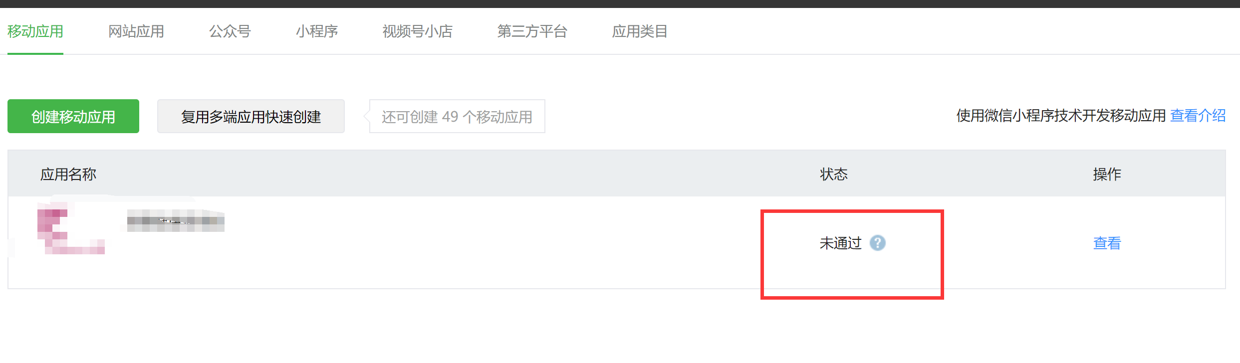 移动应用审核失败,但是看不到之前审核成功的移动应用信息,也没办法取消这个审核失败的状态数据,进详情里看到的也是提交审核失败的时候的信息