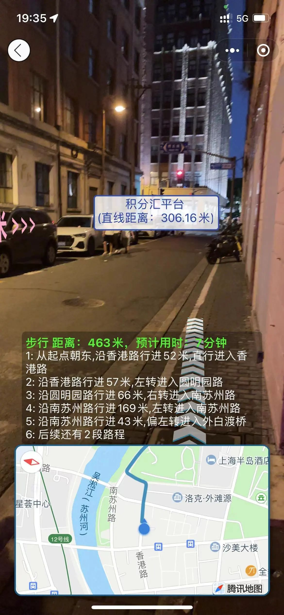 实景AR导航,步行导航,根据地图接口获取步行导向线路,通过摄像头叠加方向箭头和距离信息实现AR步行导航。AR导航比较消耗手机资源:电量、性能等,建议只用于短距离步行导航。模样大致如下图,新版本有些调整可以申请体验。