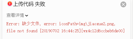 Error: 缺少文件, error: iconPath=images\search_a.png, file not found [20190702 16:18:03][wx51a1a05392e28353]