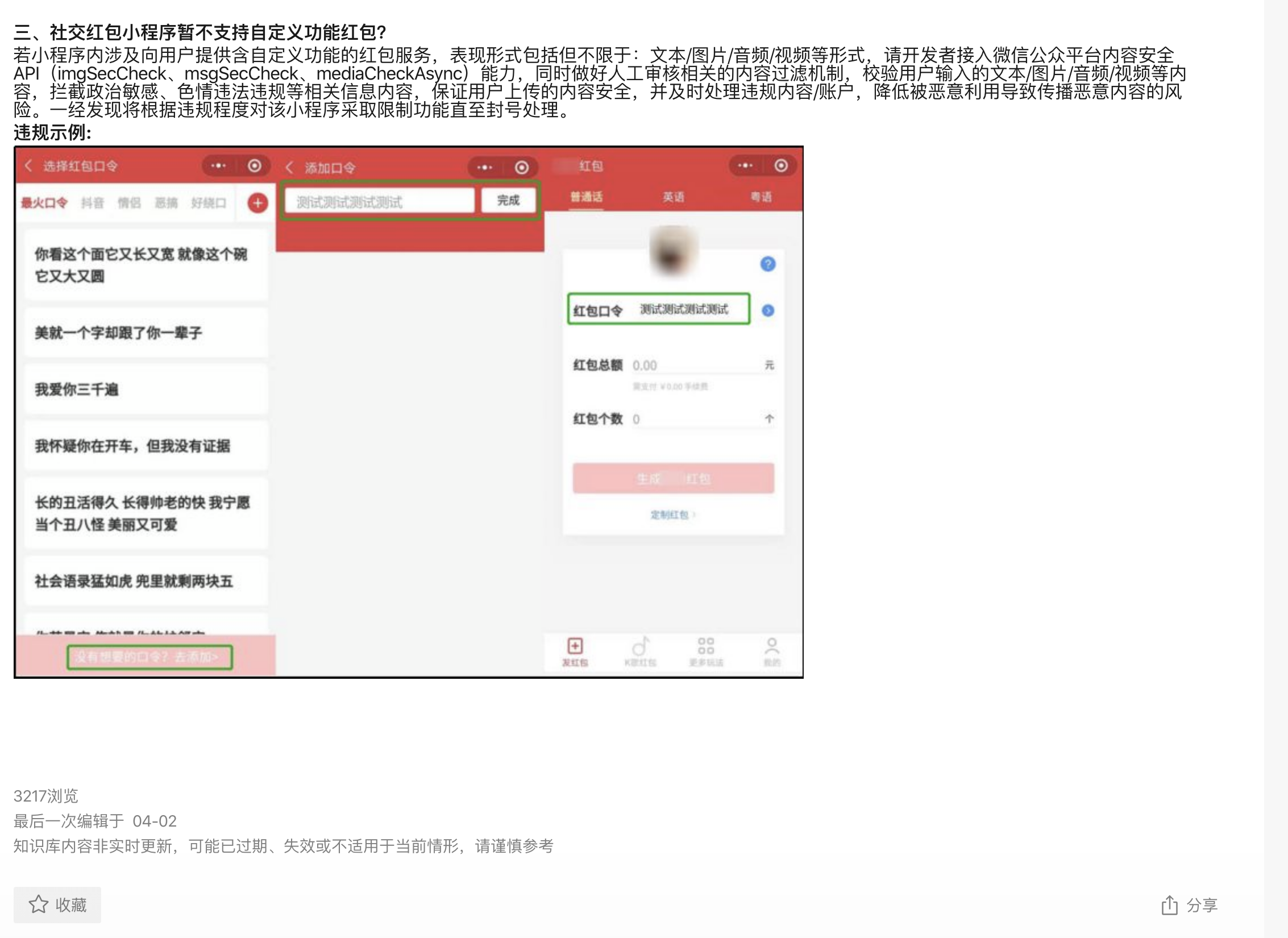 做小程序社交红包时,如果开发者接入公众平台内容安全API能力,同时做好人工审核内容过滤机制的情况下,请问社交红包小程序是否可以加入自定义功能红包?