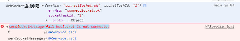 ios 系统小程序连接websocket 连接显示成功,发生信息时,提示sendSocketMessage:fail WebSocket is not connected ;