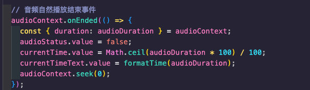 // 音频由于网络等原因等待中的回调 this.audioCtx.onWaiting(() => { that.audioCtx.pause() // 等待网络的时候音频暂停 that.setData({ waitFlag: true // 标明是onWaiting触发的暂停 }) }) // 音频准备就绪的回调 this.audioCtx.onCanplay(() => { if (that.data.waitFlag) { // 如果是onWaiting触发的暂停,就立即播放 that.audioCtx.play() // play()方法看上去能重新触发onTimeUpdate()回调 that.setData({ waitFlag: false // 取消相应的flag标志位 }) } })innerAudioContext.onWaiting(() => {this.setData({waitFlag: true})})// 监听音频进入可以播放状态的事件。但不保证后面可以流畅播放innerAudioContext.onCanplay(() => {if (this.data.waitFlag) {innerAudioContext.pause()innerAudioContext.play()this.setData({waitFlag: false})}})在onEnded里面写 innerAudioContext.seek(0)即可解决