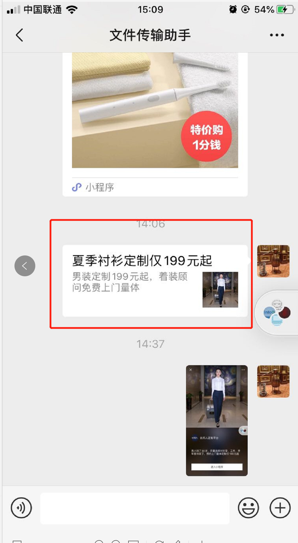 各位,这种分享在聊天中展示是这样的,右上角点击是这样